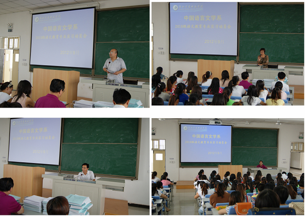 9月7日上午,中文系10级语文教育专业全体学生在1号教学楼A3教室,召开了2012年语文教育专业学生实习动员大会。参加此次大会的有中文系主任田金长、党总支副书记杨泉、副主任马晓琴、教学秘书牛文明及辅导员张晔。大会由副主任马晓琴主持。