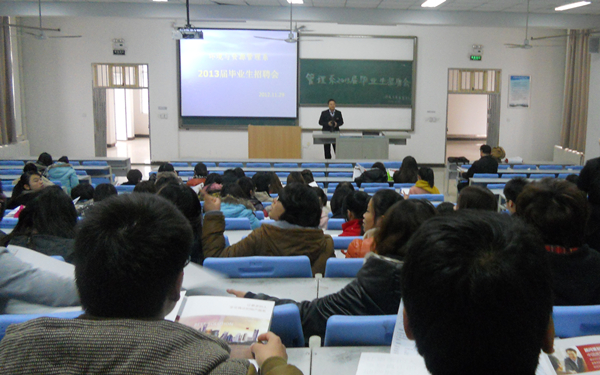 11月29日 下午,环境与资源管理系与深圳世联地产顾问股份有限公司在我院1号教学楼A3教室共同举办了房地产经营与估价专业2013届毕业生现场招聘会。参与本场毕业生招聘会的有:环境与资源管理系党总支副书记孙鹏勇、系辅导员吴海潮、2013届房地产经营与估价专业全体毕业生及2011级房地产经营与估价专业与人力资源管理专业的部分同学。