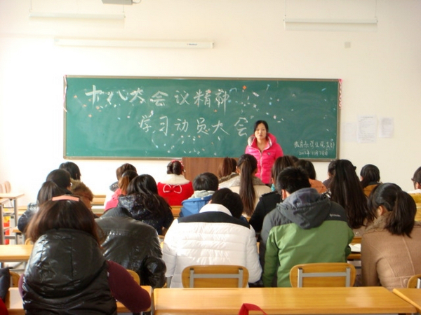 为认真贯彻落实学院党委关于学习十八大会议精神的重要指示,11月27日教育系学生党支部组织全体学生党员、预备党员、入党积极分子在三号教学楼307教室学习十八大会议精神。