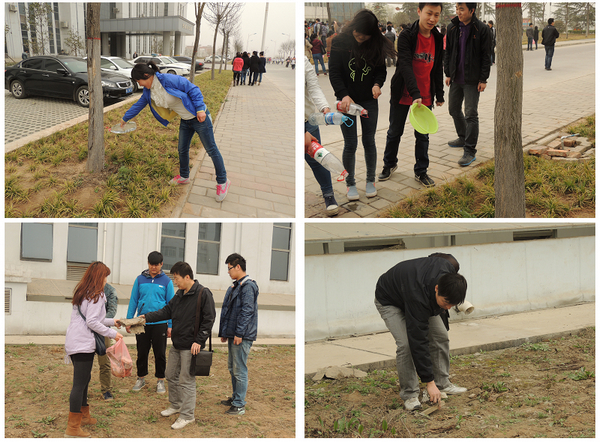 校园里,同学们在老师的组织下,拿着各自的工具,浇灌树木和花草。看到久旱的花草树木在自己的浇灌后重新焕发了生机,同学们心理洋溢着劳动者的骄傲和欢喜之情,享受着劳动的欢欣。大家在滋润树木的同时也在滋润着自己久旱的心田, “一滴水,一片情。”“一朝树木,百年育人”。通过植树节爱绿、护绿活动,将“育人”和“育树”紧密结合,使我系师生清楚意识到,植树造林人人有责,应为建设美好校园环境、美丽中国奉献自己一份力量。