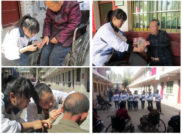 养老院的工作人员对同学们的到来表示了热烈欢迎,介绍了老人们的基本情况和注意事项。随后,同学们来到老人们身边,帮老人剪指甲、掏耳朵,帮老人打水、洗衣、打扫卫生,陪老人聊天。同学们耐心细致,忙前忙后,她们的到来给寂静的养老院带来了生机。最后同学们还为老人们献上了精彩节目,有激情的演讲、有优美的歌曲、有搞笑的幽默笑话等等,博得了老人们阵阵欢笑。