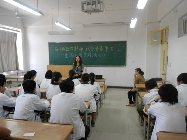 计算机科学与技术系总支书记在活动上做了讲话,她谈到,今年的“五四”是党的十八大之后的第一个青年节,我们即将迎来“五四”运动的第94个纪念日,中国共产主义青年团的第91个纪念日,在这个特殊的日子里,我们在这里隆重举行“弘扬五四精神,践行青春誓言” 重温入团誓词活动,这是对历史的祭奠,更是对未来的祝愿。“少年强则国强”,她要求同学们在生活中严格要求自己,在学习上刻苦认真,努力拼搏,用实际行动践行“五四”精神,把握现在时,做好眼前事,立下长远志,养成好品质,为实现中国梦而奋斗。