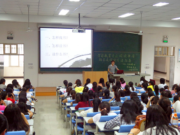 范铭博士从怎样找书、怎样读书、读什么书入题,为同学们展开详细讲解,从方法论进行分析,提出了以“文”找书、以“人”找书的观点,解决了同学们在如何寻找合适书目方面存在的问题。范博士还向大家介绍了学前教育专业方向的领军人物及其著作,并且给同学们推荐了一些学前教育专业的必读书目,希望大家在抓好课本知识的同时,积极主动地拓展专业阅读。