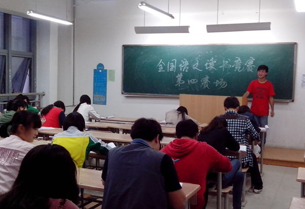 “第七届全国语文教师读书竞赛”于2013年5月29日下午进行,竞赛采用闭卷答题的形式。本次参加的学生共175人,分设6个考场。在两个半小时的考试中,同学们仔细、认真的答卷,严格遵守考场纪律。经过中文系老师仔细评阅,最评选出了读书百杰奖3人、一等奖6人、二等奖12人、三等奖19人,其余参赛学生均获得继续教育证书。