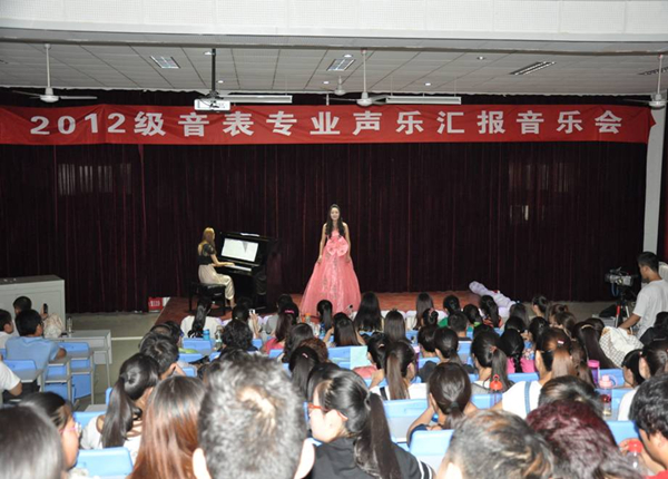 2013年6月5日下午,音乐系表演专业2012级声乐汇报音乐会在2号教学楼C1阶梯教室成功举办,唐宏副院长亲临音乐会现场为师生们鼓劲加油。