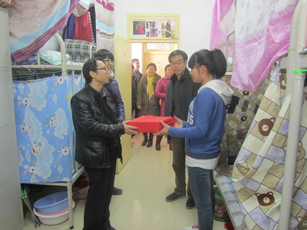 12月 16日中午 在我系学生宿舍楼顺利开展。我系党政领导班子及各位辅导老师带领学生会成员为学生送去温暖与祝福。 在活动中老师与同学们热情交流,给困难同学赠送保暖衣物并与同学合影留念,为同学们送去了冬日的暖意,这些都充分体现出了政经系老师与同学们的深厚感情.