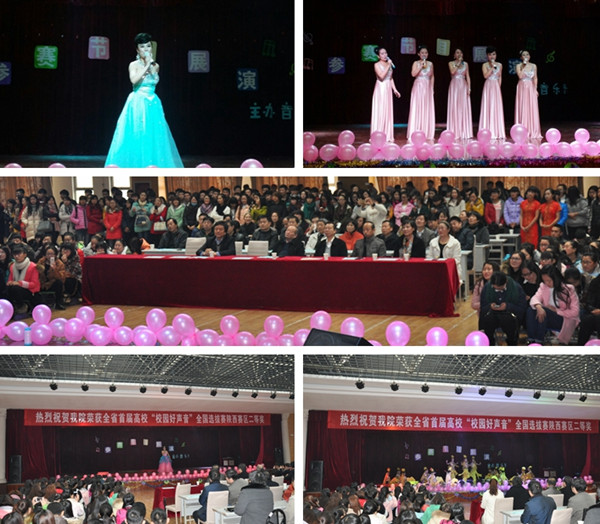 12月8日下午15点,音乐系主办的“庆祝我院荣获全省首届高校‘校园好声音’全国选拔赛陕西赛区二等奖参赛节目展演”活动在我校学生活动中心举行。我校党委书记杨成军、院长付建成、党委副书记栾高明、副院长刘宏佺等院领导和各职能部门各教学单位负责人以及音乐系师生共600多人一起观看了演出。
