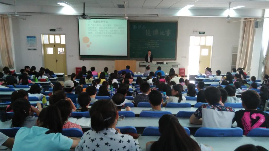2015年5月15日下午14:00数学系在二号教学楼B3阶梯教室举行了第一届说课比赛。数学系主任李宏飞教授,党总支副书记魏裕博教授,数学系副主任黄云鹏教授,各教研室主任、各年级辅导员及12级、13级及14级学生共200多人参加了此次比赛。