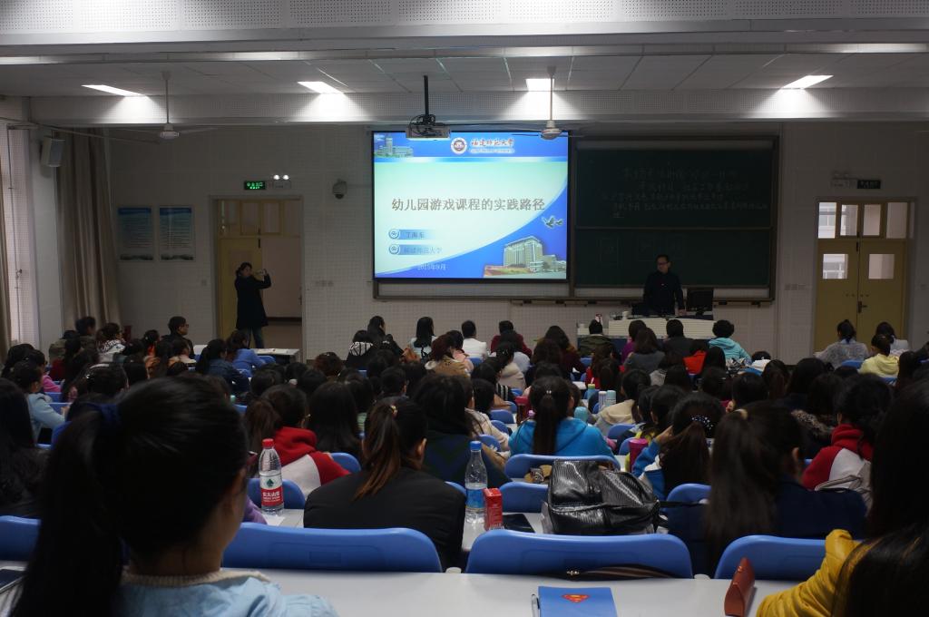 2015年11月6日早上8:30我系邀请建师范大学著名教授丁海东在二号教学楼A3教室举办以“幼儿园游戏课程的时间路径”为题的讲座。