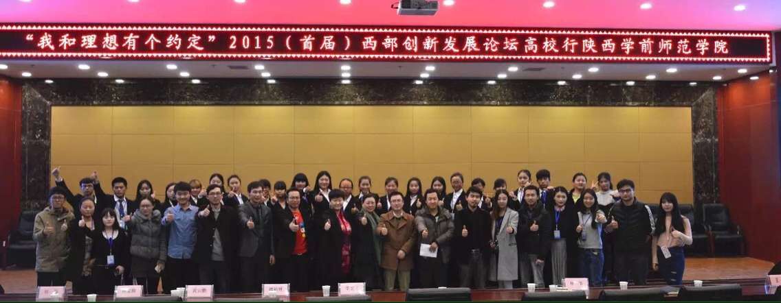 2015年12月4日下午, “我和理想有个约定”2015首届西部创新发展论坛高校行暨陕西学前师范学院数学系创新创业大赛启动仪式在图书馆三楼学术报告厅拉开帷幕。邀请2015(首届)西部创新发展论坛秘书长、陕西高校发展共创联盟创始人、理想城市执行委员会模拟政府市长何创飞先生; SIYB创业导师、陕西省创业促进会创业者俱乐部秘书长、佬香翁烤红薯首席文化官刘帅辛先生;西安同人网络科技公司创始人林兵先生;西安白色企业管理咨询公司总经理林节先生;全国首家大学生众筹创业主题咖啡馆—i创咖啡创始人高刚先生等十多位嘉宾和数学系党政领导、辅导员老师、数学系500余名学生参加了本次大会。