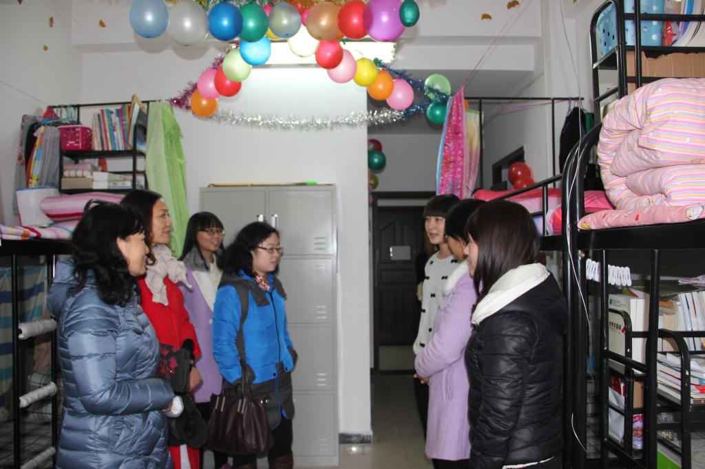 12月9日中午,计算机与电子信息系领导班子及辅导员老师,对全系入围决赛的寝室进行了参观及最终评比。地面整洁、被子整齐、装饰温馨,每个寝室装饰的靓丽多彩、风格不尽相同。有的喜庆,有的温馨,有的十分可爱;美丽的壁画,整齐的摆设,苍劲有力的书法,形式新颖,内容丰富。同学们丰富的想象力和卓越的才华,让所有老师赞叹不已。