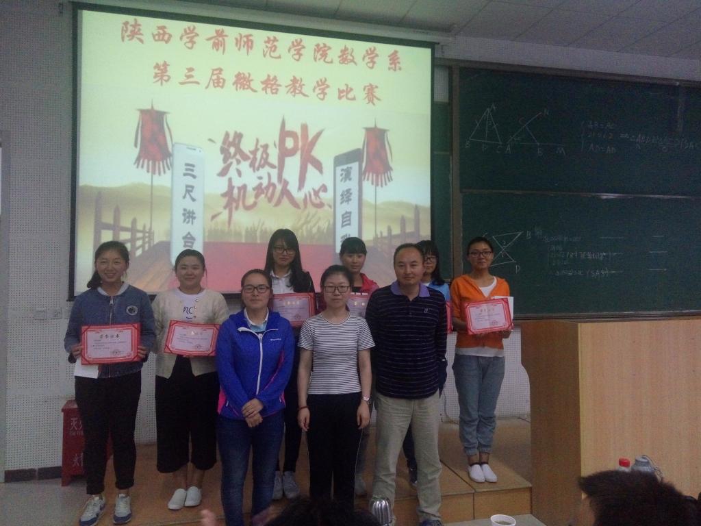 2016年5月25日下午2:30陕西学前师范学院数学系第三届微格教学大赛决赛在2号教学楼C2阶梯教室正式展开。数学系各位领导和老师出席了本次大赛,各教研室主任担任评委。