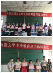 会议第一项由中文系赵卫华副教授对此次教育见习活动进行了总结,赵卫华老师重点提到的“小学语文课堂的教学理念和灵活课堂的重要性”让学生启发良多。会议的第二项由2013级见习学生代表进行交流和发言。八位发言同学或激情或从容地交流了他们的感想和见习体验,发言情感真挚,感悟深刻。会议的第三项由王黎老师宣布了此次见习活动的优秀见习生,并由赵卫华老师和赵燕老师为优秀见习学生进行颁奖,王老师鼓励同学们在以后的学习和生活中努力奋进,争做一名优秀的准教师。在此次会议的最后,中文系赵燕博士进行了总结发言,她提到了小学教育的现状和教育教学个体发展的特点等一系列问题,并向同学们提出了期望,希望学生们在日后的学习和工作中能够饱有激情、读书一生、以写促思、爱在细节,以宁静慎独的心态对待教育这一份甘于奉献的事业。