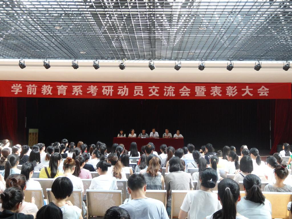 2016年6月28日上午,学前教育系在大学生活动中心召开了学前教育系考研动员交流会暨表彰大会。大会由学前教育系党总支书记主持,学前教育系主任、党总支副书记、辅导员、2012级考取硕士研学生的同学和2013级本科全体学生参加了大会。