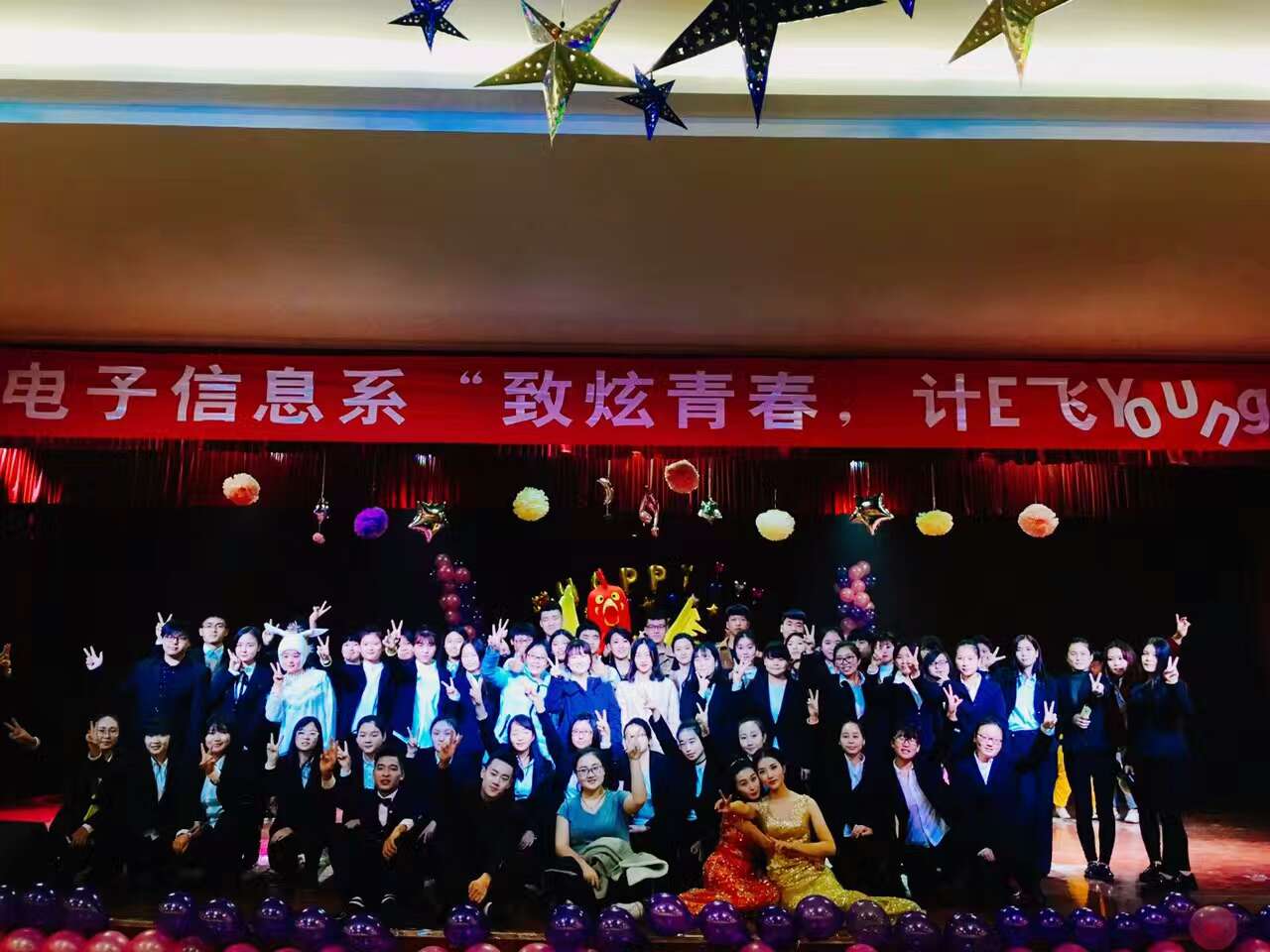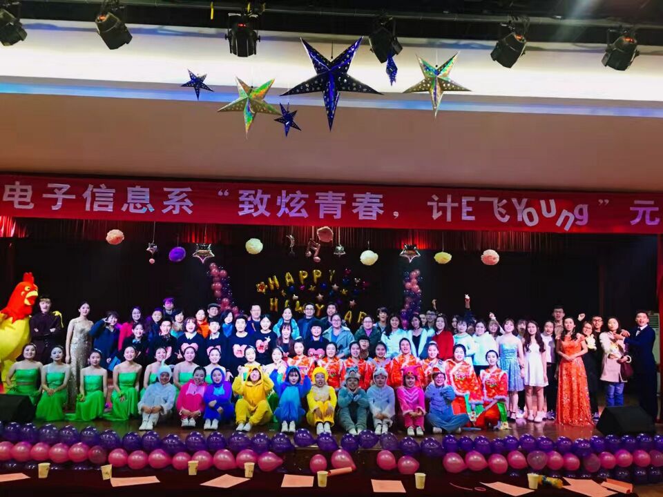 在全场观众热烈的掌声中,在系师生代表录制的祝福视频中“致炫青春,计E飞Young”文艺晚会来开了帷幕。 晚会节目绚丽多姿,形式多样,