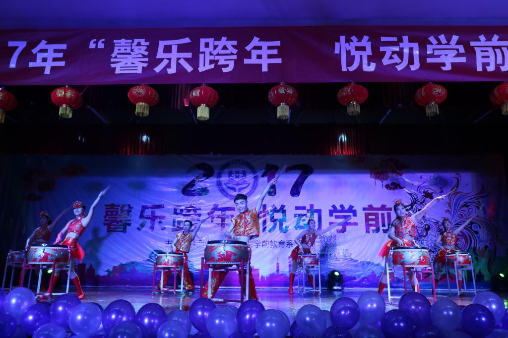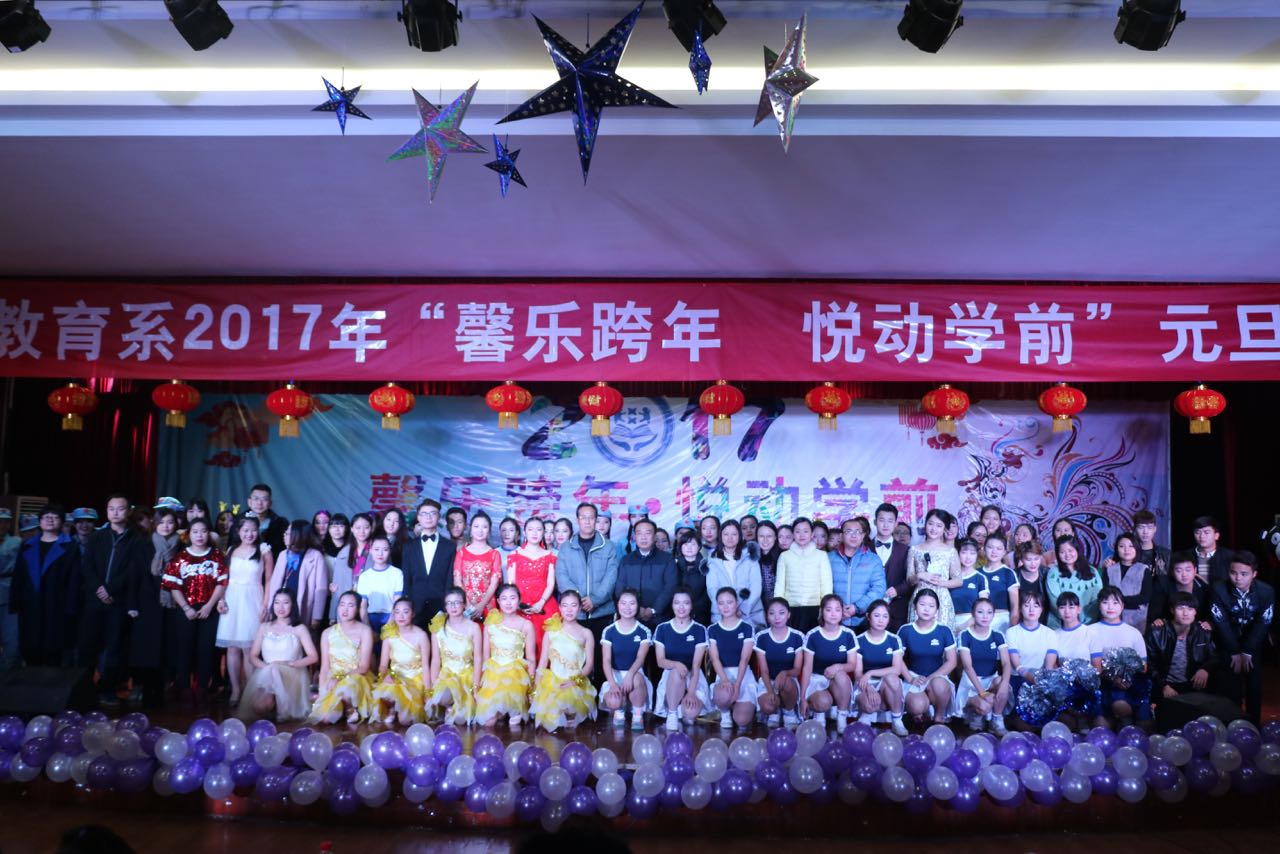 2016年12月25日晚7点,学前教育系在学生活动中心隆重举办了2017年“馨乐跨年,悦动学前”元旦晚会。学前教育系党政领导、辅导员以及各年级学生观看了晚会,整场晚会气氛热烈。