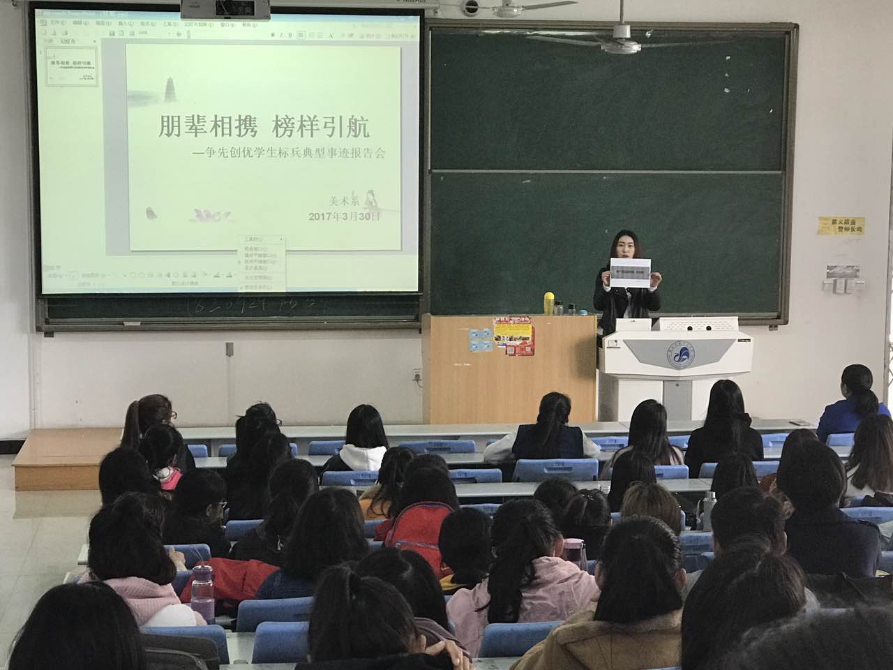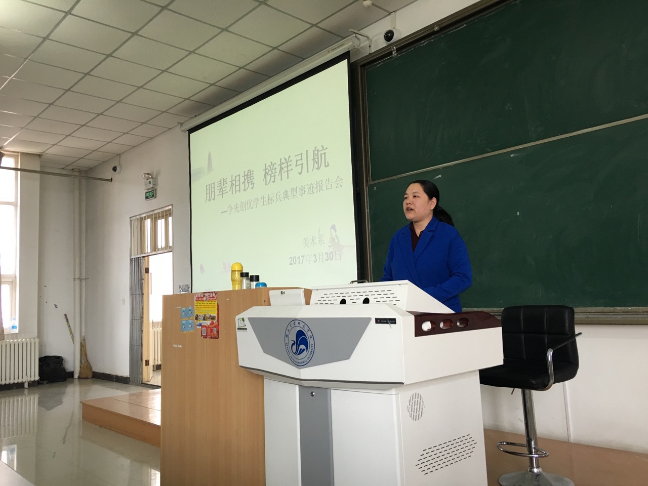 为充分发挥学生先进典型的模范带头、示范引领作用,扩大学生标兵的带动力和影响力。2017年3月30日下午,我系三名学生标兵在一教楼B3阶梯教室为我系150余名学生代表举行了“朋辈相携 榜样引航”—创先创优学生标兵典型事迹报告会。美术系党总支副书记、辅导员出席会议。