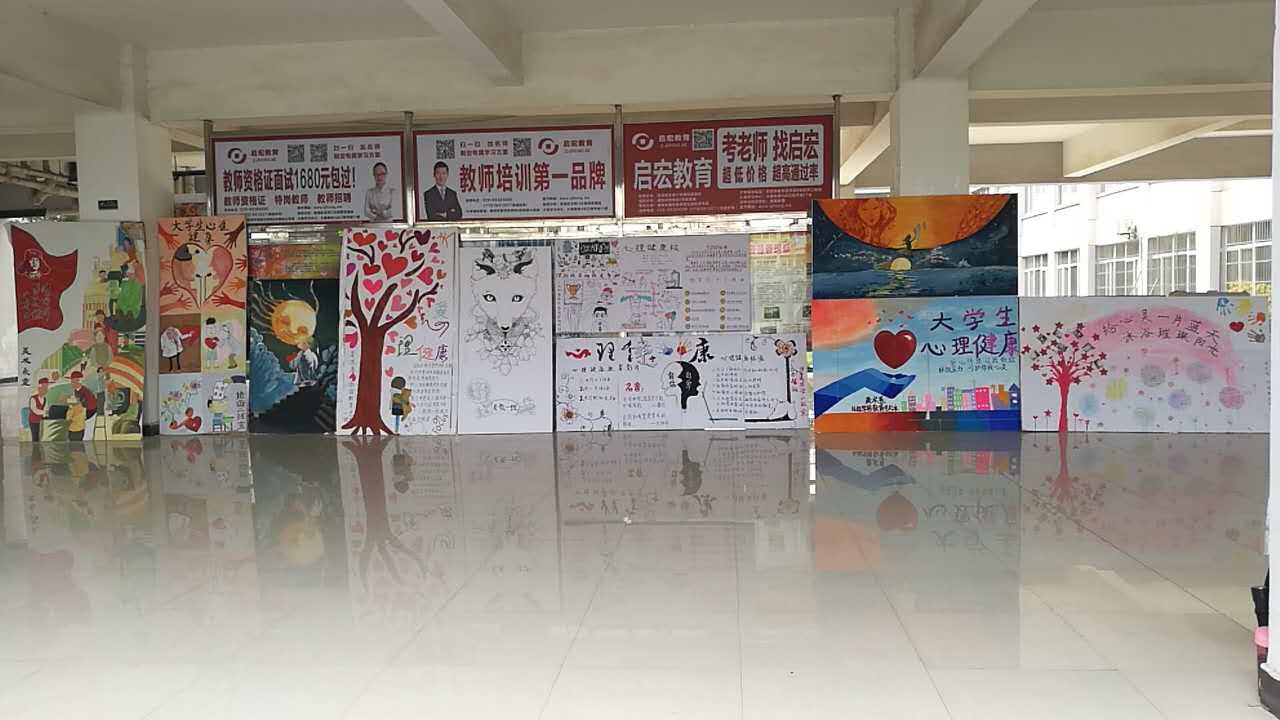 为了进一步加强我校大学生心理健康教育与宣传工作,发挥心理辅导引领作用,打造系部品牌特色。4月11日下午,在一教楼一楼大厅,美术系开展了 “倡导健康心态 成就健康心理” 为主题的心理健康教育展板宣传与评比活动。