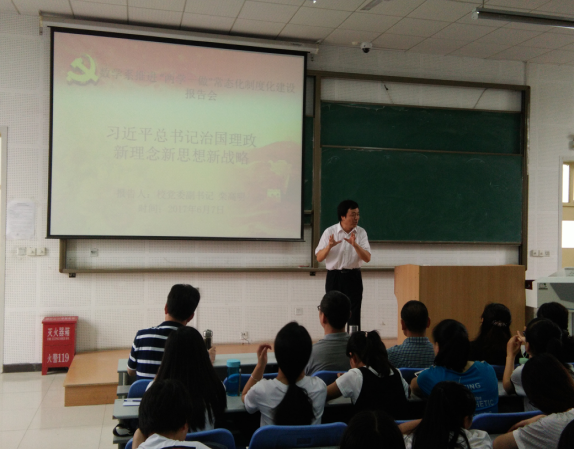 为了推进“两学一做”学习教育常态化制度化建设,数学系于2017年6月7日14:30在2号教学楼C3教室举行以“习近平总书记治国理政新理念新思想新战略”为主题报告会。此次报告会由校党委副书记栾高明主讲。数学系全体师生参加了此次报告会。报告会由数学系党总支书记李飞主持。