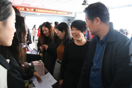与会领导、老师和学生代表观看了来自信息工程学院2017级、2018级物联网工程专业学生,带来的16项专业老师指导下完成的创新科技项目成果。作品展的目的在于激励我校青年学生积极投身到大学生创新创业的实践锻炼中来,努力完善自己,成长为“科技筑梦,创新成长”的生力军,学生作品赢得了领导和老师们的高度赞扬。副院长相艳也在百忙之中专门来到大赛现场,她与学生们亲切交流,认真观看了学生的作品展和首场大赛,就学科专业发展前景和未来规划与我院领导班子进行探讨,并给予指导性的建设意见。