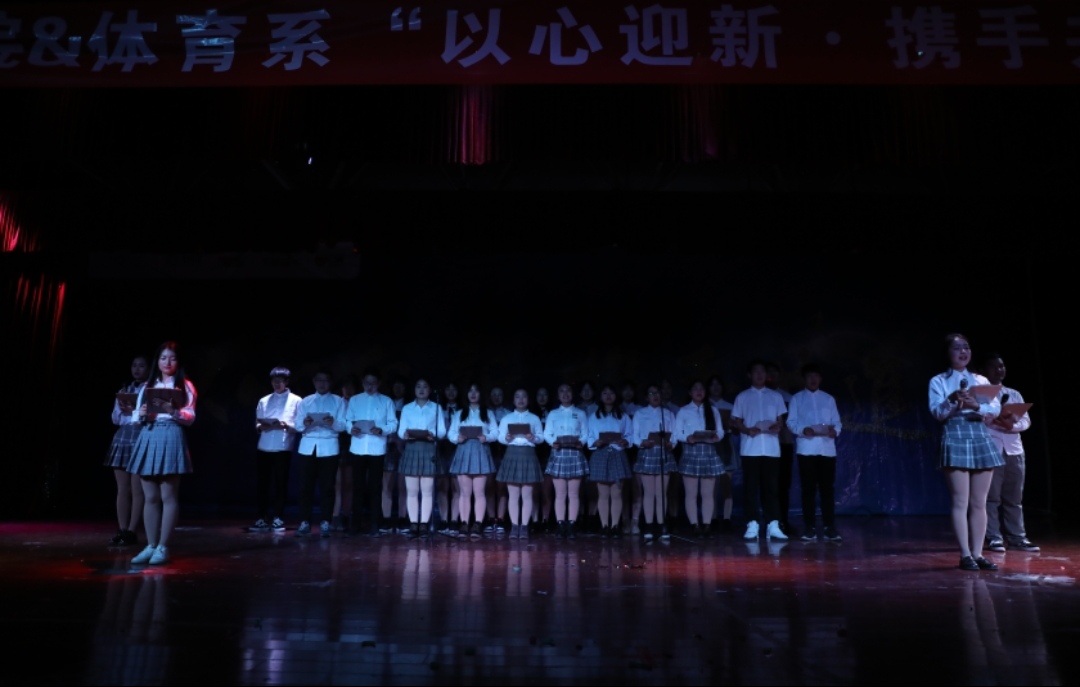 此次元旦晚会是两个院系首次联办的联欢晚会,师生通过共同录制的视频向全体学生送上新年祝福。大会首先进行了表彰颁奖,体育系党总支书记杨锡强宣读了表彰决定,其他与会领导为所在院系获奖同学进行颁奖。教育科学学院党总支书记肖新发表了新年致辞。