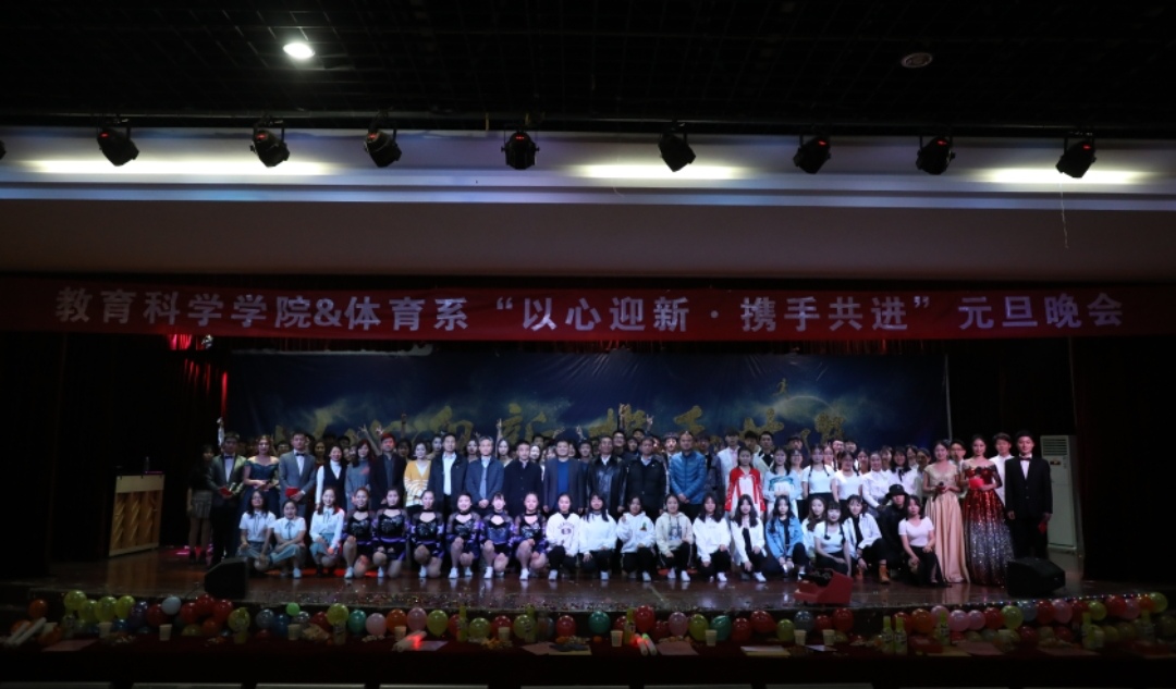 岁末已至,崭新的2019年即将到来。为了轻松愉快喜迎新年,12月23日晚,教育科学学院与体育系联合举办以“以心迎新,携手共进”为主题的迎新元旦联欢晚会暨学生表彰大会在学校大学生活动中心隆重举行。教育科学学院与体育系的党政领导、辅导员、教师代表及千余名同学共同观看了演出。师生欢聚一堂,喜迎新年到来。