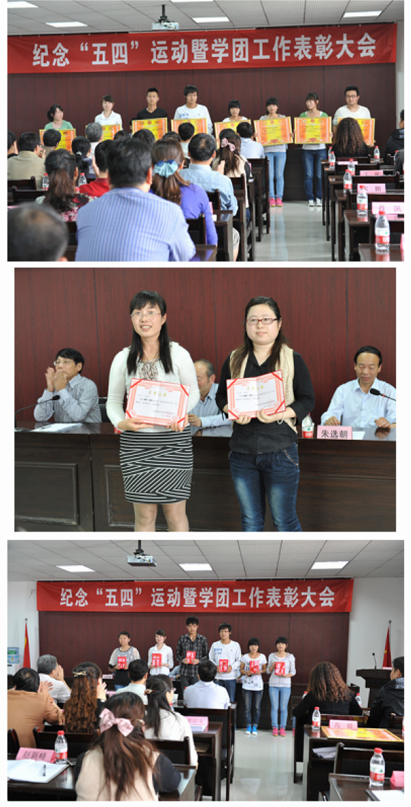 大会在庄严雄壮的国歌声中拉开帷幕。副院长刘宏佺宣读了《关于表彰2010—2011学年共青团先进集体和优秀个人的决定》,对历史文化与旅游系、音乐系2个“五四红旗团总支”;教育系10级学前教育2班团支部等16个“先进团支部”;环境与资源管理系学生会、外国语言文学系学生会2个“先进学生会”;红十字协会、沁心社2个“优秀社团”;邓淙文、景艳2名“优秀团总支书记”;刘思辰等112名“优秀团干部”;霍露露等179名“优秀团员”;张佳乐等14名“杰出青年志愿者”进行表彰。历史文化与旅游系团总支书记邓淙文,“优秀共青团员”霍露露、“杰出青年志愿者”张佳乐分别代表获奖集体和个人发言。