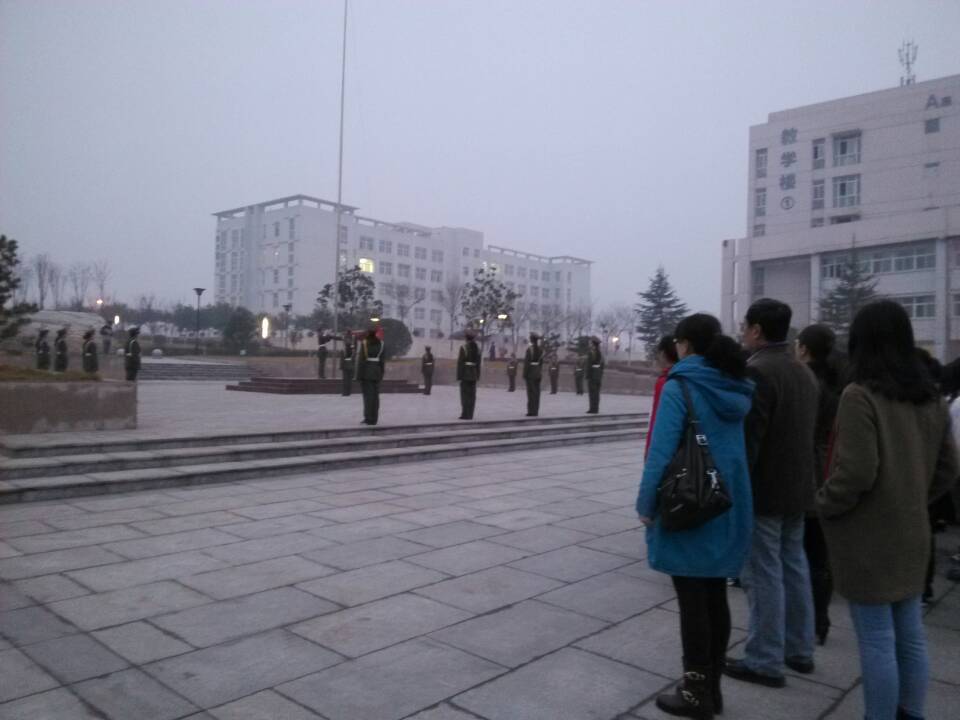 陕西学前师范学院于2014年3月3日早晨7:00点举行第二周升国旗仪式。本次升旗由教育科学系团总支负责,教育科学系全体师生参加。