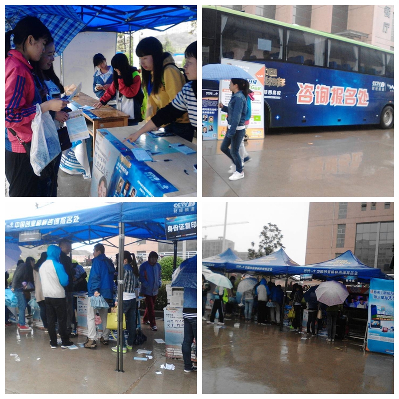 在长安校区中心广场,央视财经频道(CCTV2)的工作人员对报名工作进行了详细而热心的指导。作为协办方,校学生会的同学们一丝不苟地接待着每一位前来问询的同学,引导同学们填写调查问卷,热情服务答疑解惑。他们针对报名表填写、身份证复印、领取创业卡、上交参赛表等报名流程进行了详细而全面的介绍。不少途径广场的同学们被活动现场吸引,纷纷上前询问情况并填写报名表,积极参与这项能够激发创业热情、培养创业能力的活动。