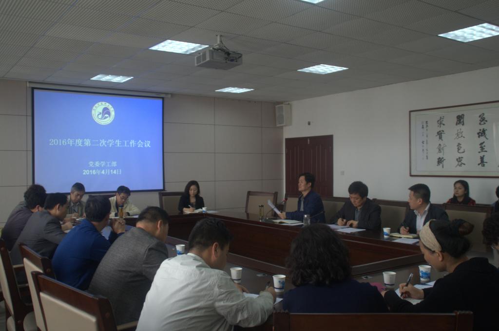 4月14日下午,学校在行政楼第四会议室召开了2016年度第二次学生工作会议,校党委副书记栾高明出席会议并讲话。各院(系)党总支书记、学工部全体人员参加了会议。会议由学工部部长史保怀主持。