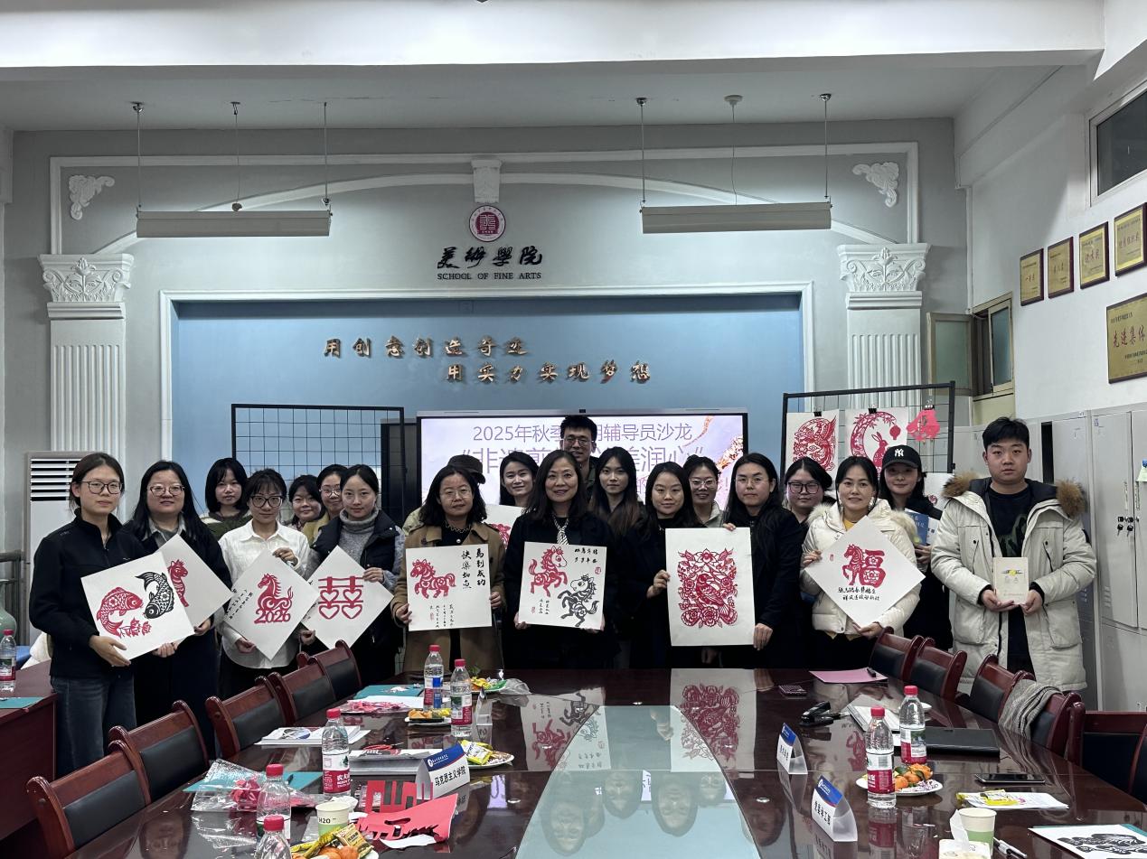为进一步丰富辅导员文化生活、增进交流,2025年12月25日,由学工部主办、美术学院承办的第58期辅导员沙龙在启真楼209会议室举行。本次活动以“非遗剪纸 以美润心---解锁你的专属剪影”为主题。党委学工部部长出席活动,来自幼儿教育学院、马克思主义学院、数学与统计学院和美术学院等学院的辅导员共同参加。活动特邀美术学院杨晓丽老师进行全程指导。