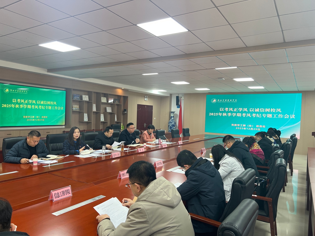 为强化考试管理、规范考风考纪,营造公平考试环境与育人氛围,充分发挥考风对校风学风的正向引领作用,12月29日,学校召开2025年秋季学期考风考纪专题工作会议。校党委副书记夏炎、副校长李明军出席会议,党委学工部、教务处负责人及各二级学院党委副书记参会。会议由党委学工部主要负责人主持。