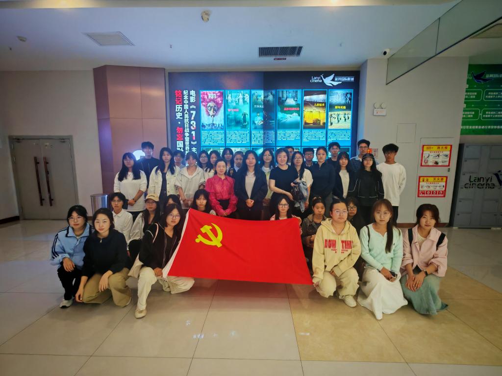 时值“九一八”事变爆发94周年和中国人民抗日战争暨世界反法西斯战争胜利80周年的特殊历史节点,为深切缅怀遇难同胞与革命先烈,警示师生勿忘国耻、矢志自强,2025年9月24日下午,外国语学院党委组织学生党支部的40余名党员和入党积极分子前往蓝羿国际影城,集中观看历史题材电影《731》。党委书记高海燕、学生党支部书记艾菁、陈燃参加了此次观影活动。