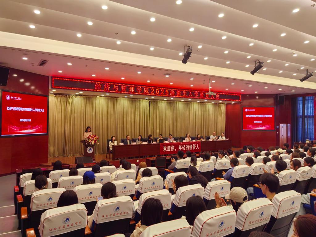 2025年9月19日下午,经济与管理学院在长安校区图书馆东侧报告厅举行2025级新生入学教育大会。学院领导班子成员、各系主任、专业教师代表、新生辅导员以及2025级全体学生参加了本次大会。大会由学院党委书记陈璐主持。