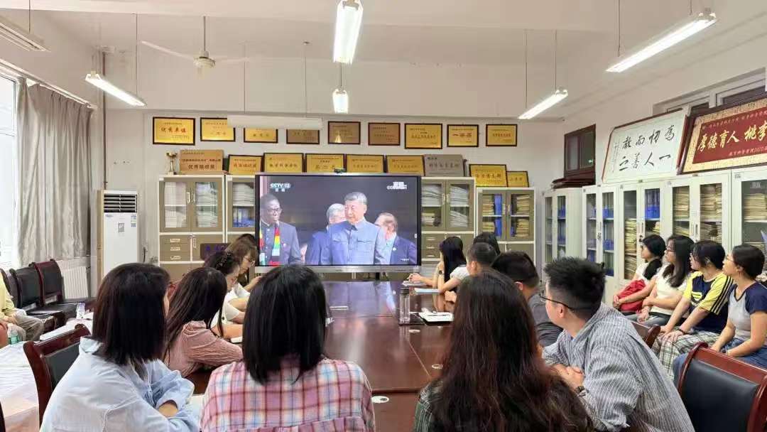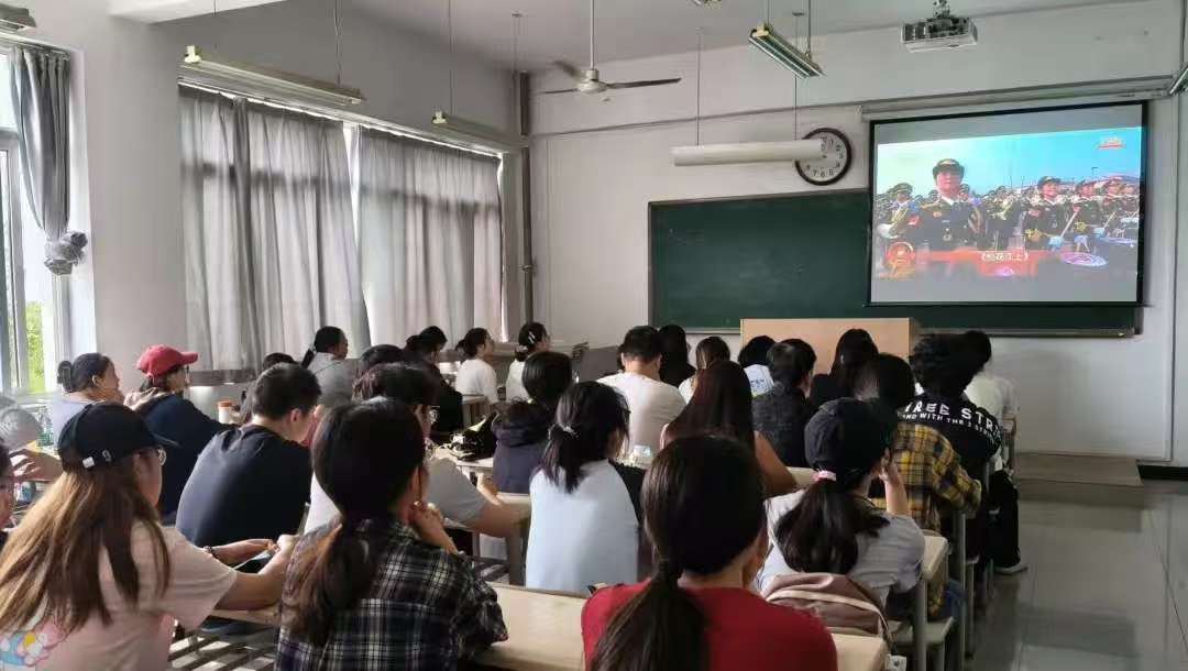 9月3日上午,纪念中国人民抗日战争暨世界反法西斯战争胜利80周年大会在北京天安门广场隆重举行,以盛大的阅兵仪式同世界人民一道纪念这个伟大的日子,共同开创更加光明的未来。教育科学学院积极组织教职工及学生干部、党员分别在博文楼A202、A405教室集中收看直播,共同回顾历史、感受国家强盛,凝聚奋进力量。