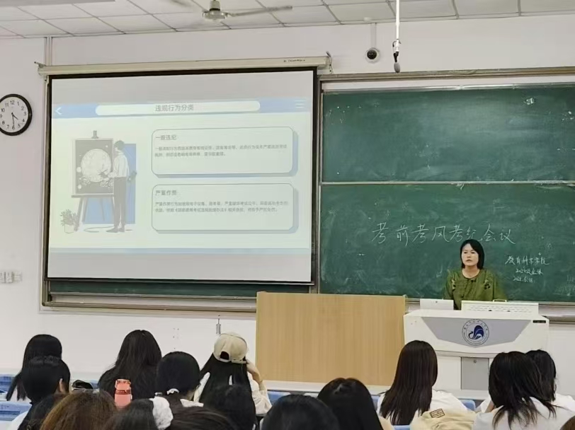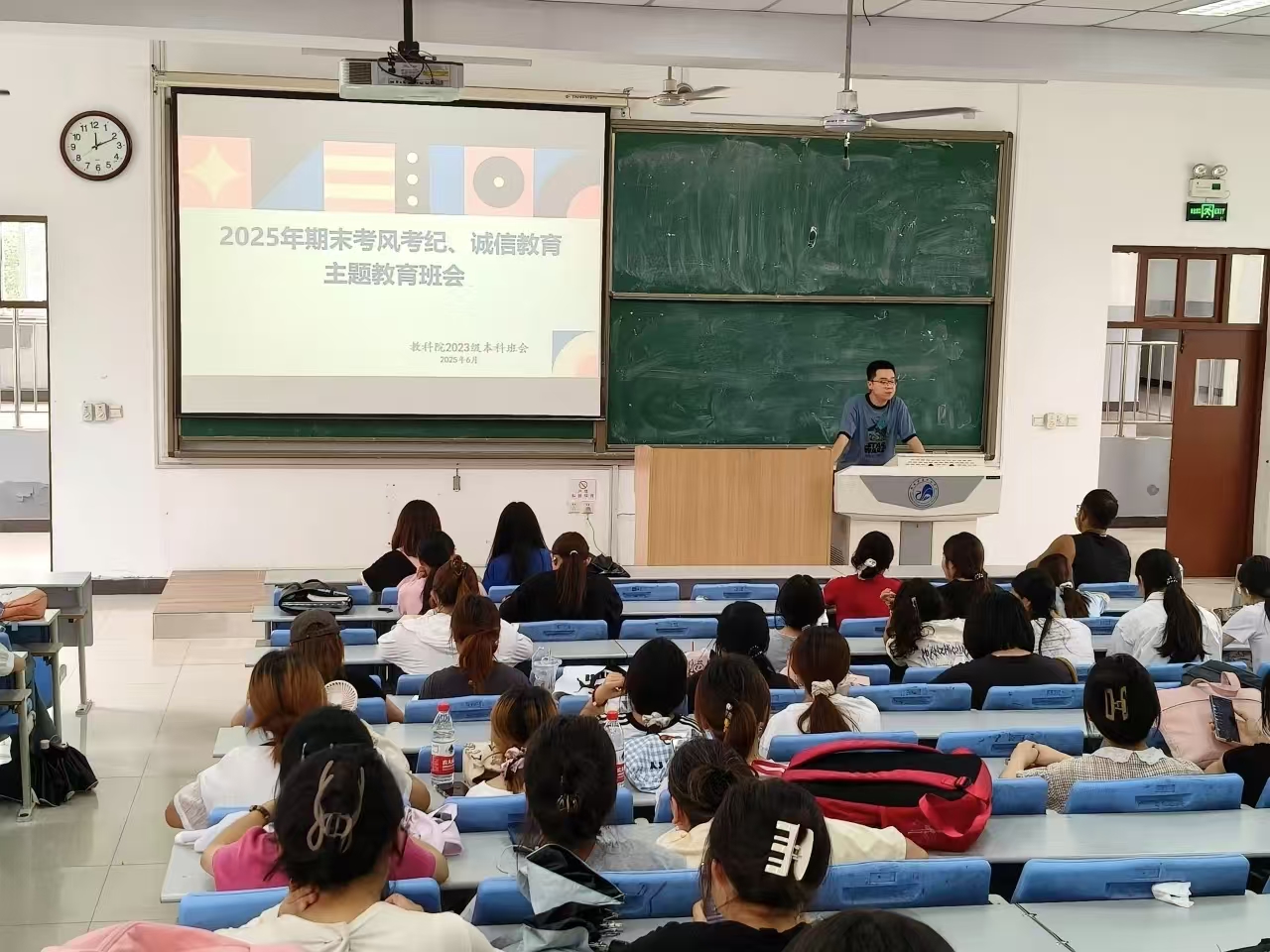 为深入推进学风建设,加强学生诚信考试意识,规范考场秩序,营造公平、公正、诚信的考试环境,教育科学院于6月中下旬,分阶段、分批次在全院范围开展针对大学生英语四六级、期末考试的考风考纪专项教育。