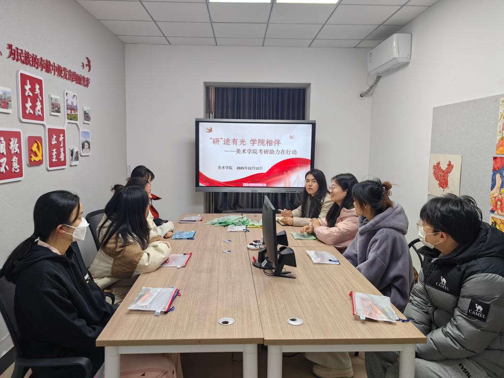 随着考研日益临近,为缓解学子备考压力,传递学院温暖关怀,美术学院于2025年12月12日在10号楼“一站式”学生社区举办“‘研’途有光 学院相伴:美术学院考研助力在行动”活动,为正在冲刺阶段的考研学子送上真挚的祝福与坚实的支持。